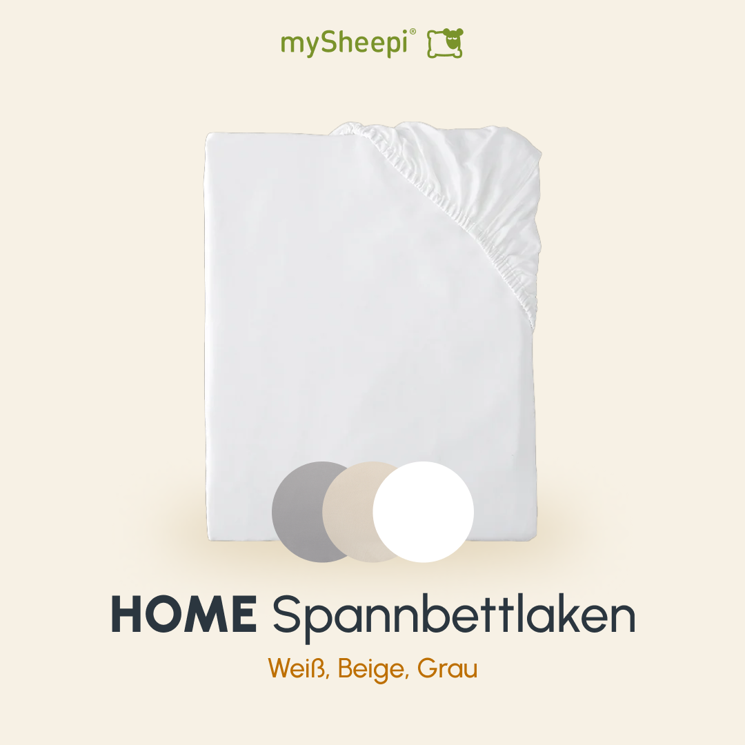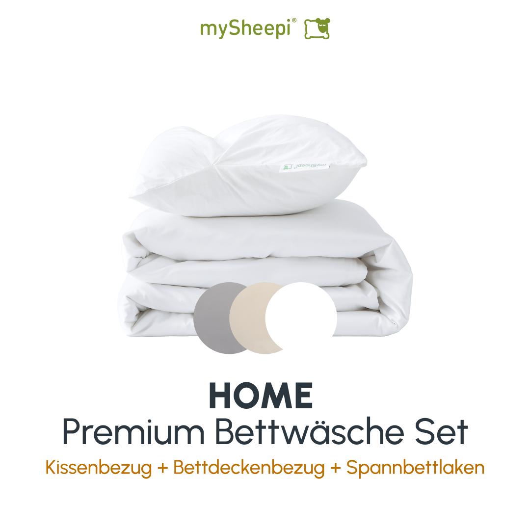 Hochqualitative Satin Bettwäsche aus ägyptischer Baumwolle in grau, weiß oder beige. Perfekt für Dein mySheepi HOME Kissen: