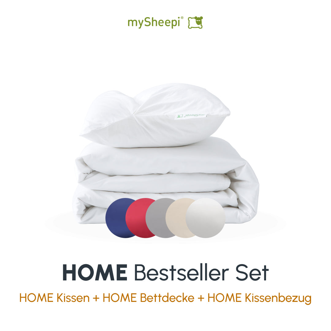 Das HOME Bestseller Set bietet Dir alles, was Du für ein komfortables Schlafzimmer benötigst. Du erhältst das mySheepi HOME Kissen, den passenden Kissenbezug sowie eine mySheepi Bettdecke. Und das alles zu einem günstigeren Preis, als wenn Du alles einzeln kaufen würdest.