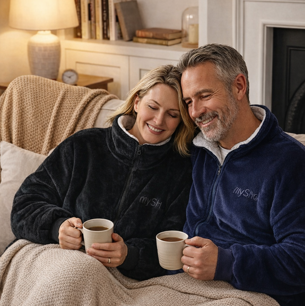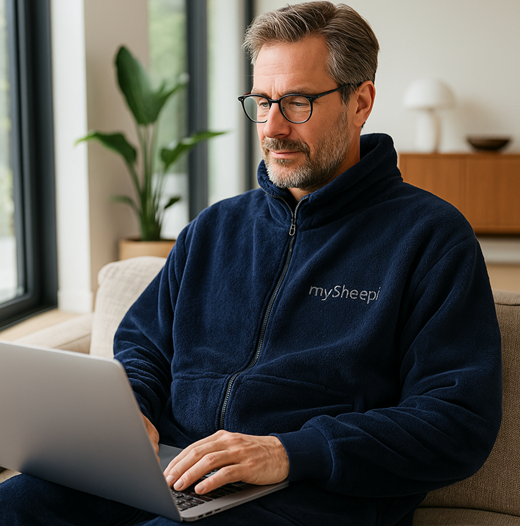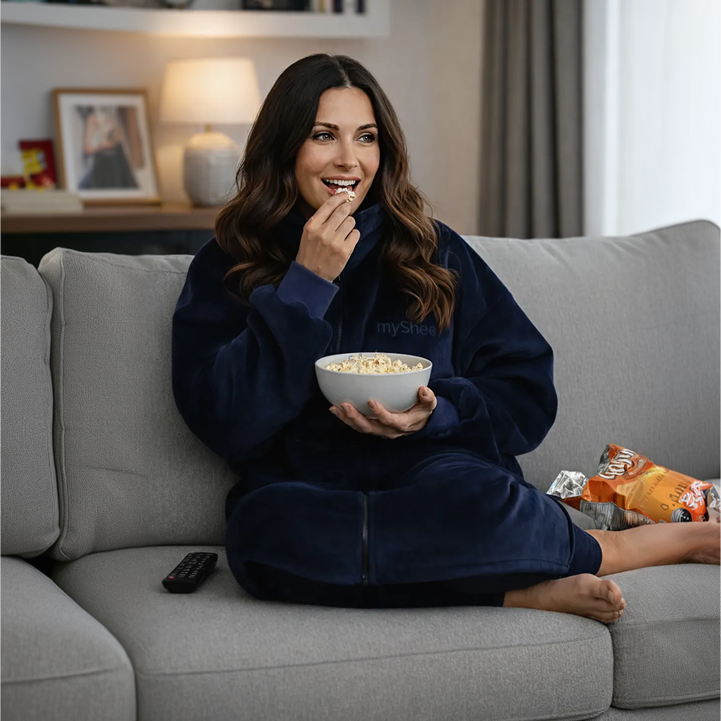 Mit dem mySheepi Kuschelmantel bleibst Du wohlig warm, ohne die Heizung aufzudrehen. Perfekt für lange Fernseh-Abende.