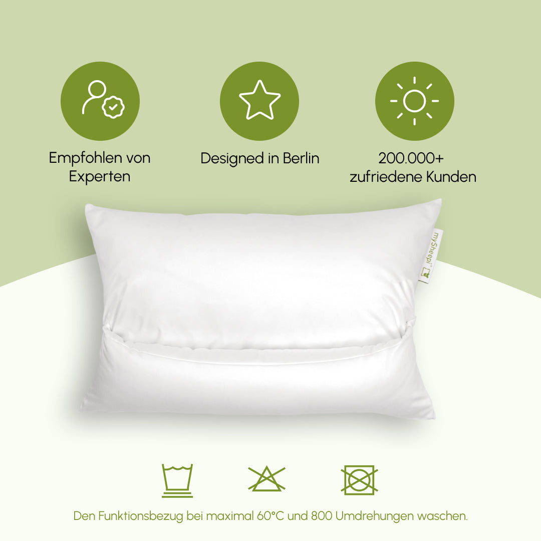 Du kannst Dein mySheepi HOME mit einem normalen Kissenbezug verwenden. Für das bestes Schlafgefühl empfehlen wir Dir jedoch die passgenauen mySheepi Kissenbezüge.