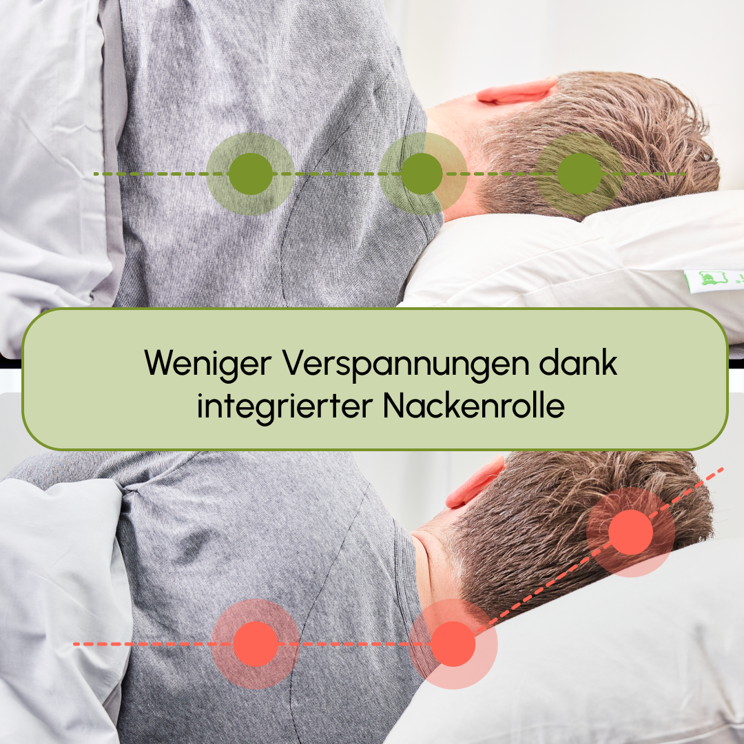 - Frei von Nackenschmerzen: Die integrierte Nackenrolle bringt Deine Wirbelsäule in eine gesunde Schlafhaltung.