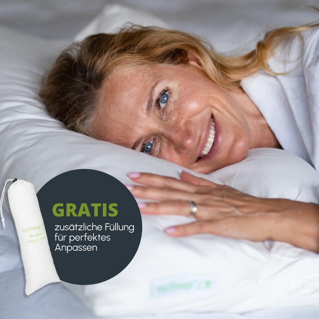 Diese kurze Eingewöhnungszeit ist ganz normal, denn Dein Nacken und Deine Muskulatur passen sich Schritt für Schritt an die optimale Haltung an. Schon nach dieser Phase wirst Du den vollen Komfort und die Wirkung Deines mySheepi Kissens genießen.