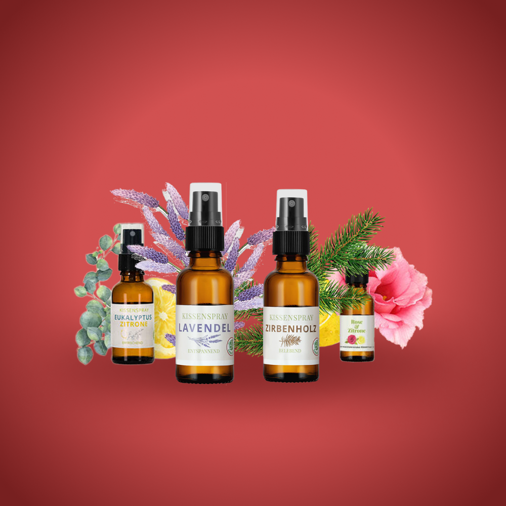 Unser Kissenspray gibt es in verschiedenen natürlichen Duftnoten – jede davon sorgfältig ausgewählt, um Deine Sinne zu entspannen und Dir beim Einschlafen zu helfen.