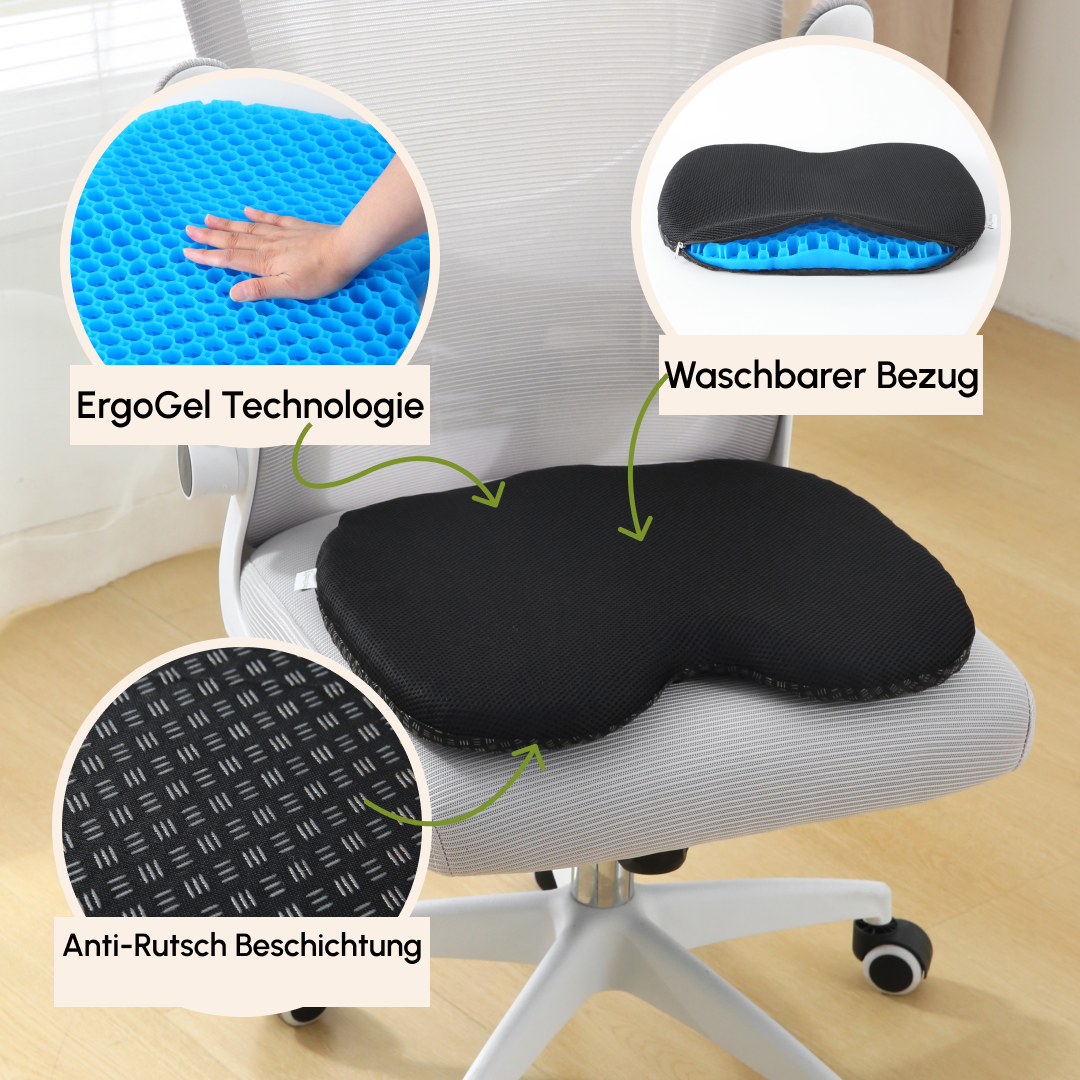 - Ergonomische Sitzhaltung: Entlastet das Becken und stützt das Steißbein.